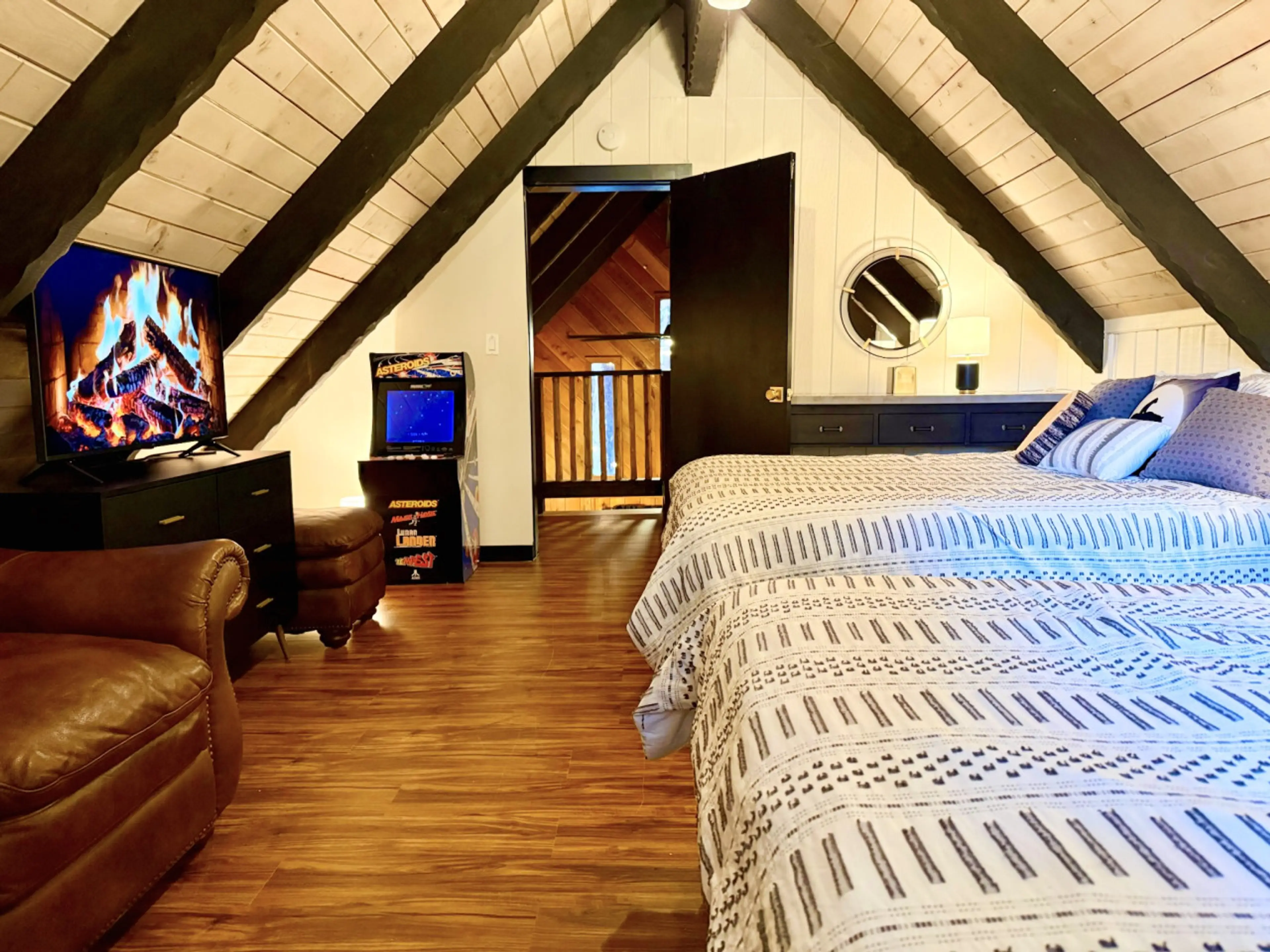 Each cabin is uniquely crafted — from the historic 1930s log lodge to the light-filled A-frame — with thoughtful details like wood-burning fireplaces, spacious kitchens, fast Wi-Fi, and outdoor decks for snowy stargazing. All just a short walk from Big Bear Village, the lake, and Snow Summit Resort.